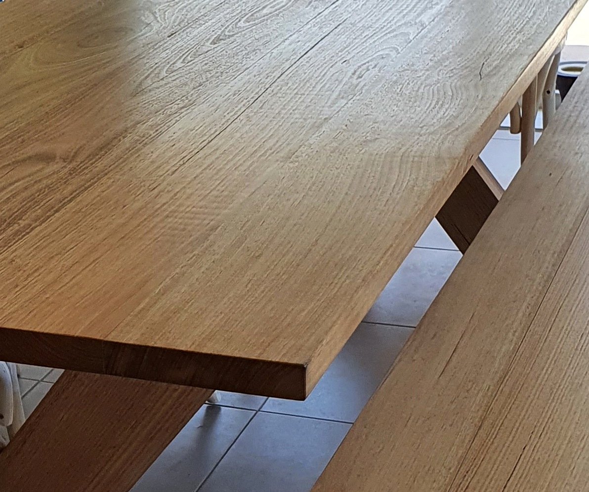 Solid table with cross legs made from Victorian Ash.